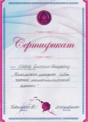 Интернатура в Учебном заведении «Витебский государственный медицинский университет» по специальности: стоматология, квалификация: врач-стоматолог
