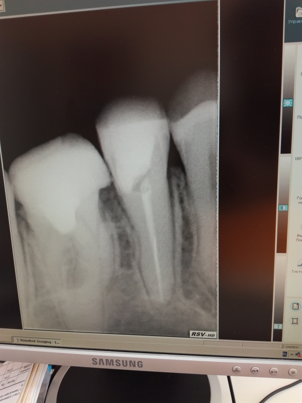В шестом зубе снимок не полностью показывает периапикальные ткани. Возможно, неприятные ощущения могут быть связаны с развитием воспалительного процесса в области верхушек корней или с разгерметизацией коронки.