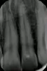 3 недели назад ударилась передним зубом об голову другого человека. На следующий день и до сих пор сосочек между передними 22 и 21 зубом опух. На нем синяя точка, как будто ручкой поставили. При этом боли в зубах нет, но есть постоянное ощущение зуба в отличие от остальных зубов, а также, при давлении языком на зуб, ощущается в корне щелчок, будто бы зуб встаёт на место. Сделала снимок. Смущает, что при увеличении контрастности снимка, на корне зуба 21 видно какое-то изменение.
