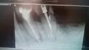 Сегодня мне перепломбировали канал зуба. Зуб подготавливаю под установку коронки. Врачу на снимке что-то не понравилось, и она решила переделать зуб. Анестезию не делали, ибо зуб мертвый, без нервов, но в один момент я испытала сильную боль. Болела половина черепа, я не могла сдержать слезы в кресле у стоматолога. Выпила две таблетки обезболивающего, сейчас все нормально. Доктор выписала антибиотик и ещё много всего, от противовоспалительных препаратов до лекарства при остеохондрозе. Смотрю на снимок и понимаю, что корневой канал "пробит" (тот зуб, что левее, без штифта).