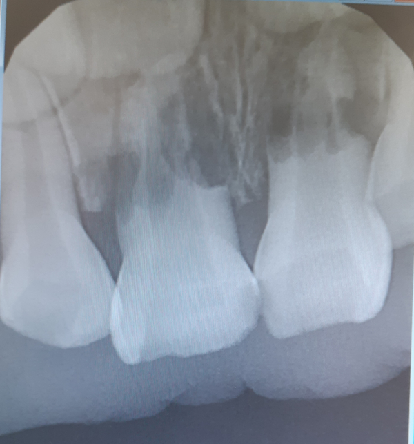 Ребенку 3 года 11 месяцев. В июне ребенок упал и стукнулся зубами об пластмассовую горку, десна кровоточила. На следующий день сделали рентген, ничего там не нашли, зубы целы. И вот две недели назад ребенок съел яблоко, и вечером пожаловался, что больно во рту. Ночью верхнюю губу разнесло, забрали в больницу, кололи антибиотик три дня и все прошло. Теперь на десне образовался свищ над передними зубами, при надавливании выходит гной.