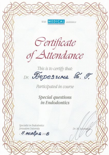 лекционный курс Эндодонтическое лечение от постановки диагноза до решения проблемы д-р Д.Уэббер, семинар Определяющие факторы успеха в современном эндодонтическом лечении. Современные подходы к реставрации зубов, подвергающихся эндодонтическому лечению д-р М. Мартиньони - 2011 год