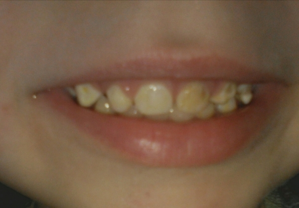 Моей дочке 3 года. На 3-х передних зубках слева очень быстро появился, как я поняла, кариес. Я даже не видела с чего все пошло. 3-й зуб вообще будто отколот.