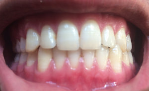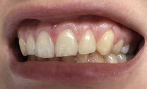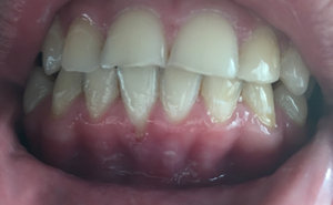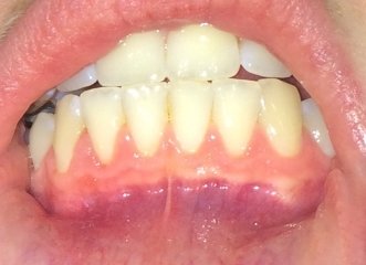 Уже в течение нескольких лет такая проблема: десны в прямом смысле потихоньку слазят с зубов. Сами десны не очень сильно воспалены, не болят, при чистке кровоточат. Сейчас мне кажется уже пик, они оголили зубы до такой степени что они, во-первых, увеличились в высоту, это очень некрасиво. Во-вторых, под слезшей десной зуб отличается цветом, он белее.