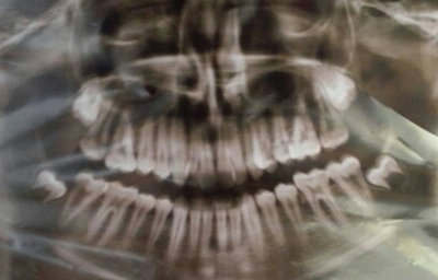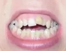 Моей дочери 26 лет. В детстве ударилась, затем примитивная шапочка с корсажной лентой на зуб, когда прорезался постоянный, в настоящее время — результат. В семье ни у кого патологии нет. Это дело случая и нажима корсажной ленты на зуб.