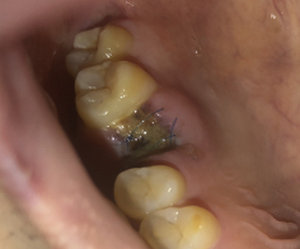 После удаления зуба через день температура 37.4, стреляло за ухом, десна воспалилась. На приеме врач сказал, что потеряла сгусток, перечистил. Вечером того же дня его опять нет. Прием пищи в обоих случаях через 6-7 часов. Сейчас на дне лунки белый налет. Не особо беспокоит, пока не попадает туда еда.