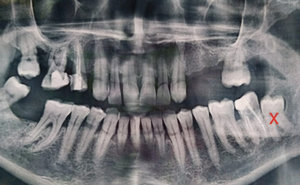 Нижняя правая восьмерка. Сам зуб не беспокоит, капюшон не мешает, но бывает из-под капюшона вытекает гной. Сказали надо удалять, но я что-то побаиваюсь, т.к. зуб целиком находится в костной ткани и близко к нижнечелюстному каналу.