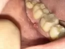 Когда происходит обострение периодонтита, то появляется свищ из которого может выделяться серозно-гнойный экссудат. После стихания острых воспалительных процессов свищ закрывается.