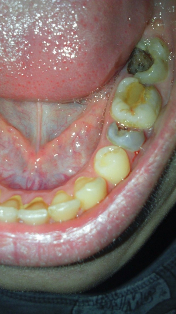 Вторая проблема это зуб, который мне поставили на штифт 5-ка. Он не болит, но между ним 6-кой болит десна. Сегодня она припухла, на вид и по ощущениям так же, как и на месте удаленного зуба, оттуда исходит неприятный гнилостный запах и каждый раз, когда чищу зубы, идет кровь. Я ходила к врачу, который делал этот зуб. Мне сказали придти, когда заживет лунка от удаленного зуба. На просьбу сделать снимки мне отказали. По внутренней стороне нижней челюсти вдоль шейки зуба появился не так давно налет и камень, десна просела, сильно кровоточит, когда чищу зубы.
