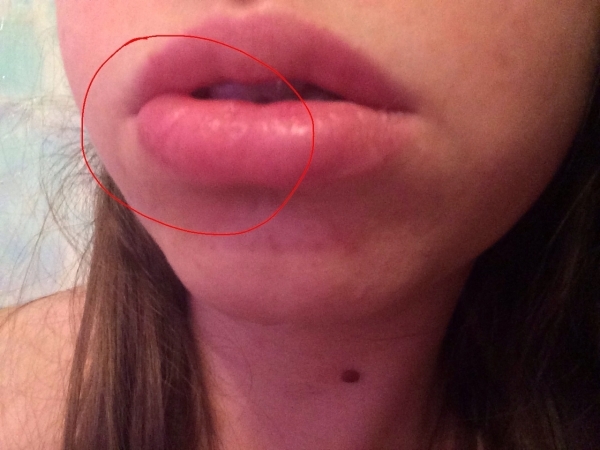 Примерно неделю назад появился стоматит на нижней губе, в виде маленького пятна, к сожалению, лечения не было. И сегодня заметила, что губа со стороны стоматита опухла, и сама язва очень больших размеров с кровью.