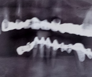 Обошла уже не одну клинику, везде говорят разные вещи. Кто говорит, что нужно чуть ли не все удалить и делать либо импланты, либо съемные протезы, кто — имплатны на низ, наверх металлокерамику, сроки и этапы работы все называют разные. Буду вам очень благодарна за консультацию. Снимок прилагаю.