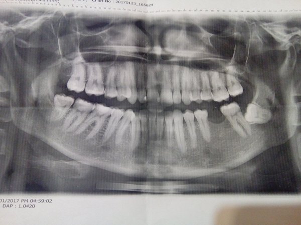• Внимательно изучил снимок, но стоматологических причин не увидел. Надо тщательно прощупать переходную складку слева и проекции верхушек корней. Затем, если выявится где-то болезненность, сделать прицельный снимок для лучшей четкости.