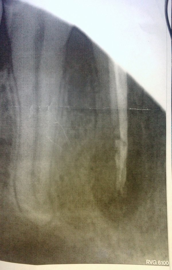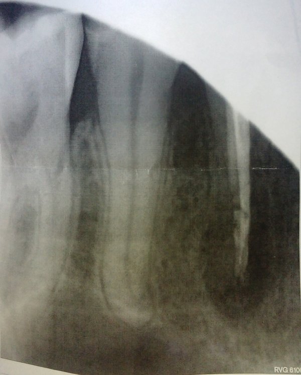 • Ситуация не очень хорошая - на снимке четко видна киста. Лечить через каналы при таком размере сложно и нет гарантий. Я бы рекомендовал резекцию верхушки корня для сохранения зуба. Причина кисты в неполноценной обработке и пломбировании каналов, но, это при условии, что зуб был пульпитный без изменений на верхушке корня восемь месяцев назад. Вполне возможно, что воспалительны читать далее