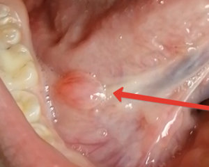 Я сегодня обнаружила под языком шишку синеватого цвета. Что это может быть? Не болит, если её не трогать.
